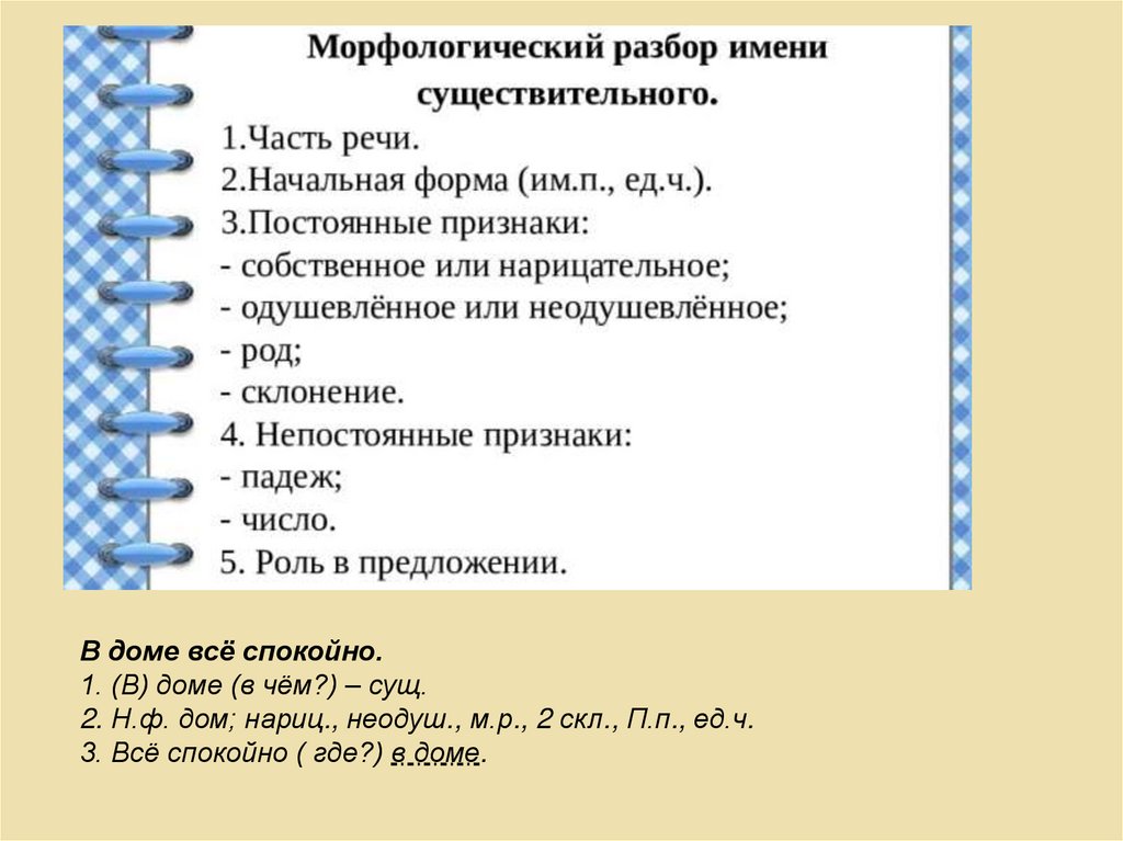 В доме всё спокойно.1. (В) доме (в чём?) – сущ.