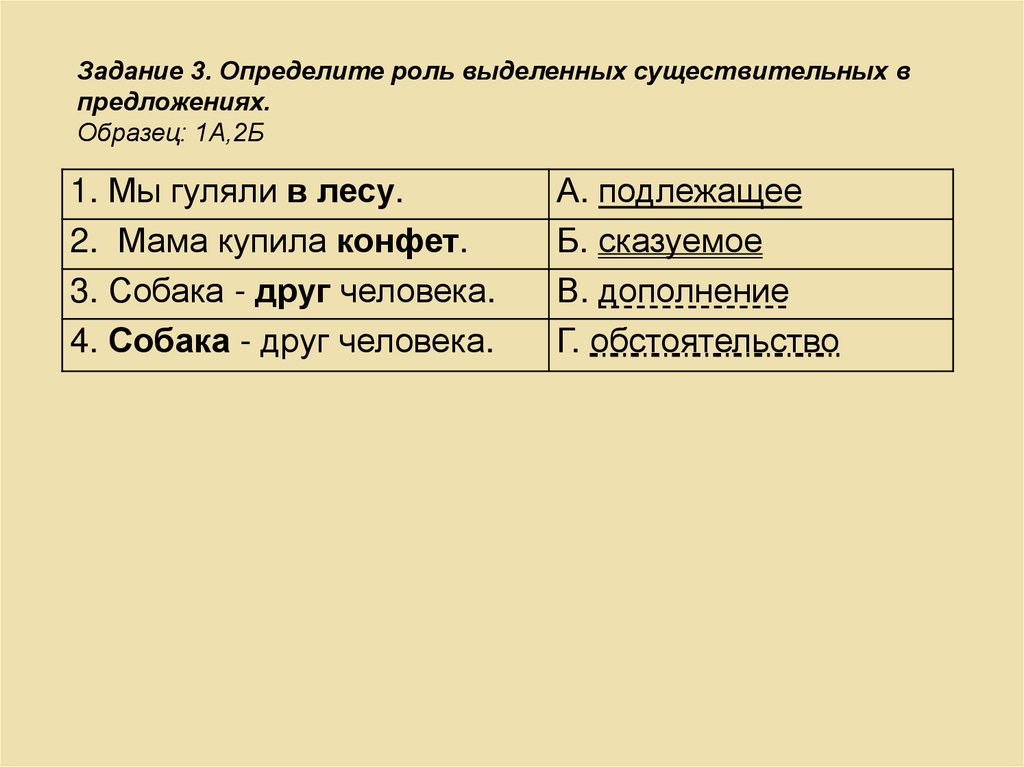 Задание 3. Определите роль выделенных существительных впредложениях.