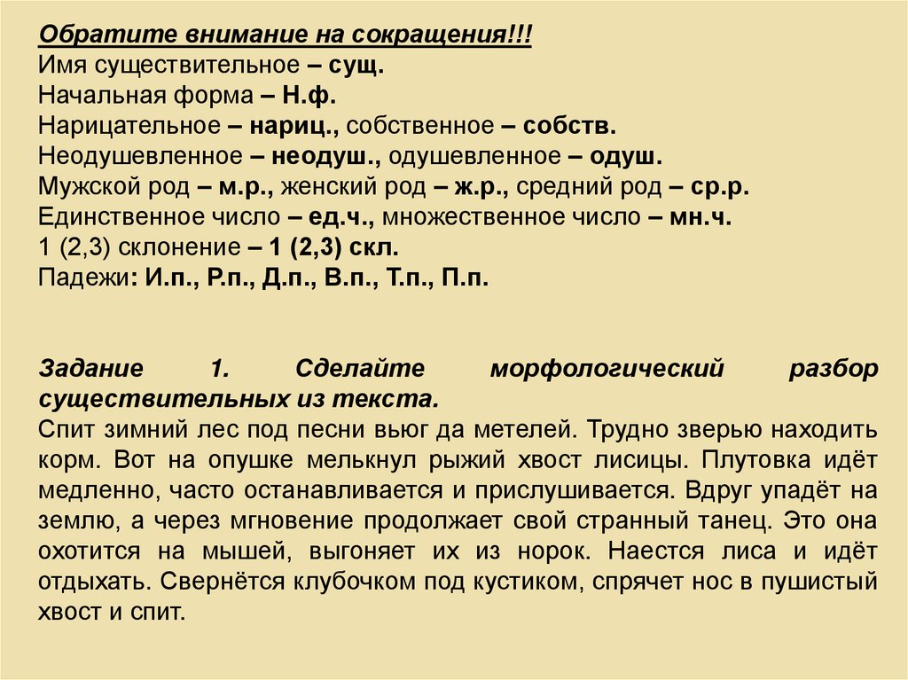 Обратите внимание на сокращения!!!Имя существительное – сущ.