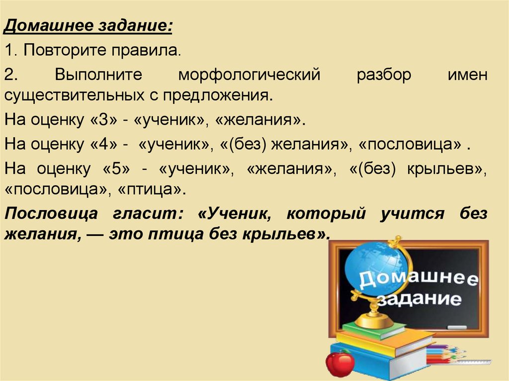 На оценку «4» - «ученик», «(без) желания», «пословица» .