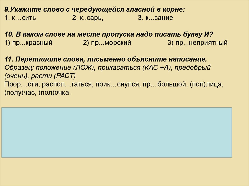 Прор…сти, распол…гаться, прик…снулся, пр…большой, (пол)лица,