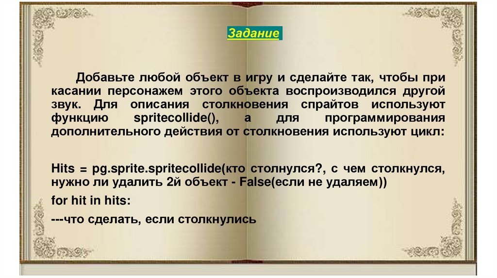 ЗаданиеДобавьте любой объект в игру и сделайте так, чтобы при