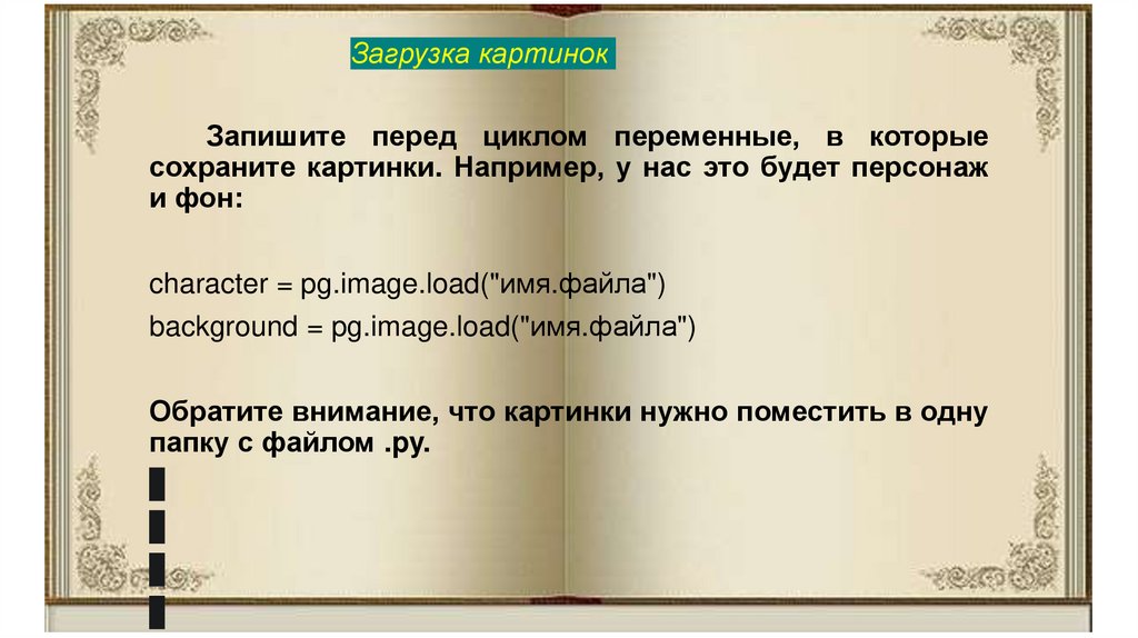 Загрузка картинокЗапишите перед циклом переменные, в которые