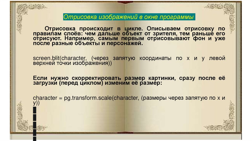Отрисовка изображений в окне программыОтрисовка происходит в цикле. Описываем отрисовку по