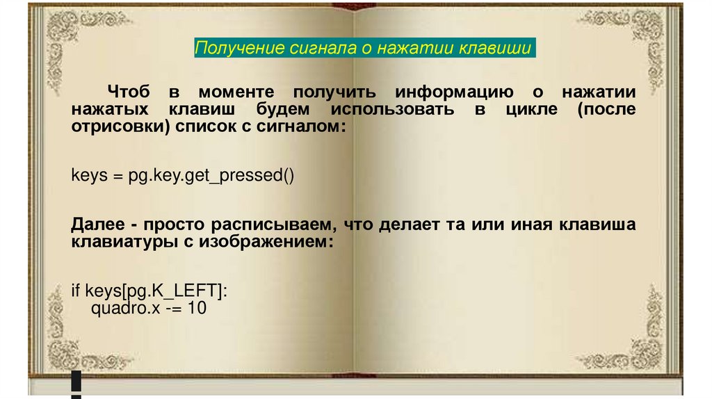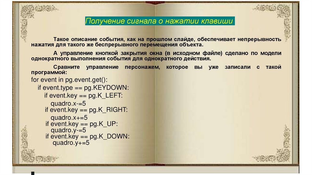 Получение сигнала о нажатии клавишиТакое описание события, как на прошлом слайде, обеспечивает непрерывность