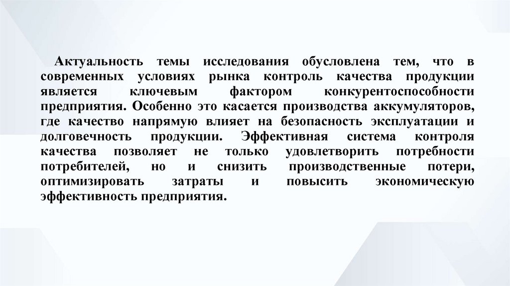 Актуальность темы исследования обусловлена тем, что всовременных условиях рынка контроль качества продукции