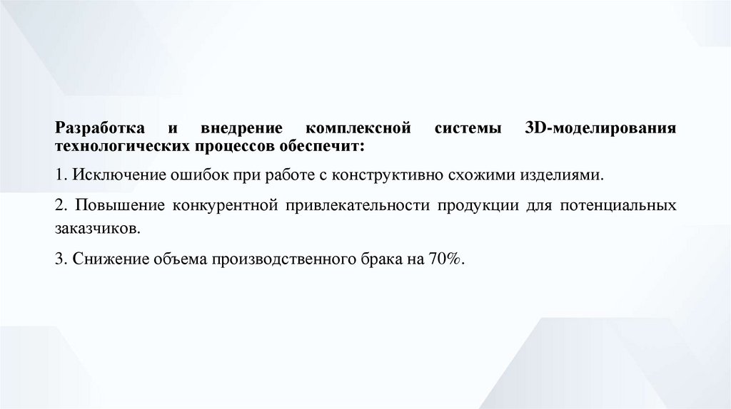 3. Снижение объема производственного брака на 70%.