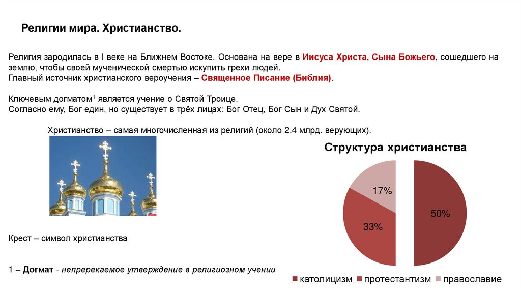 Религии мира. Христианство. Православие.Православие – третье по численности среди христианских направлений. Глава православной