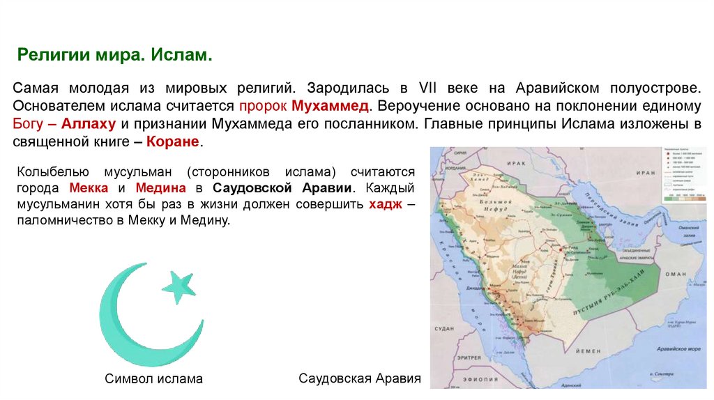 Религии мира. Ислам.Самая молодая из мировых религий. Зародилась в VII веке на Аравийском полуострове.