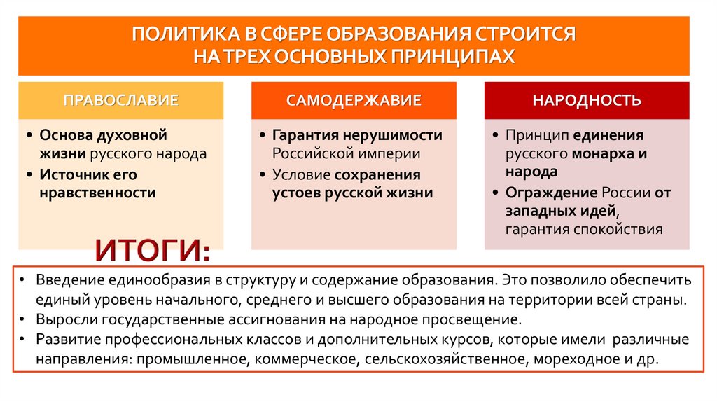 ПОЛИТИКА В СФЕРЕ ОБРАЗОВАНИЯ СТРОИТСЯНА ТРЕХ ОСНОВНЫХ ПРИНЦИПАХ