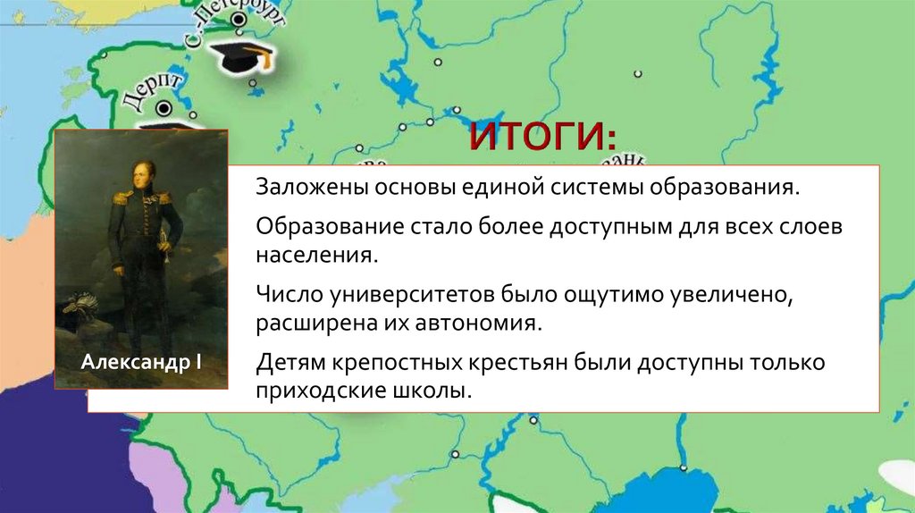 Заложены основы единой системы образования.Образование стало более доступным для всех слоев