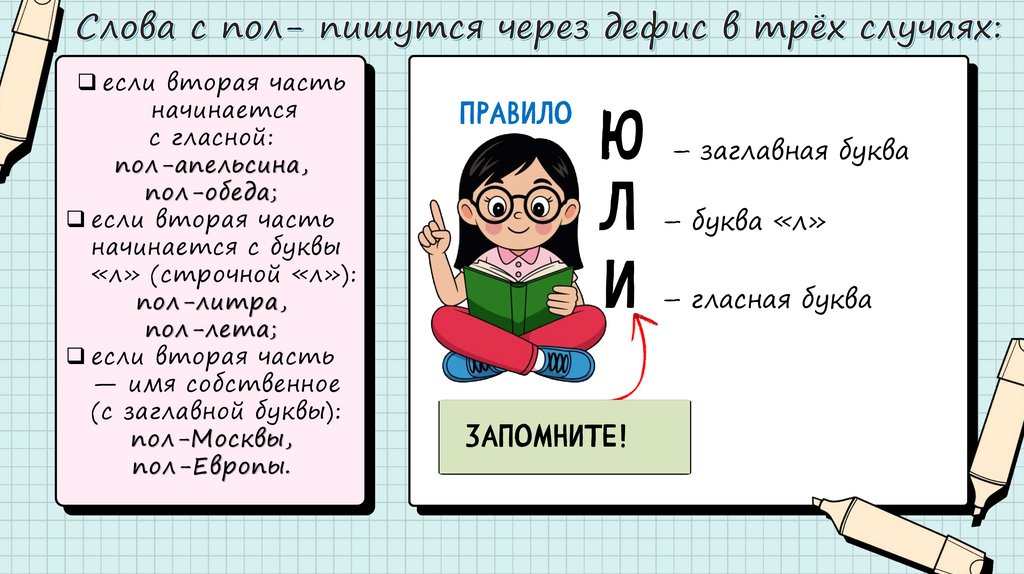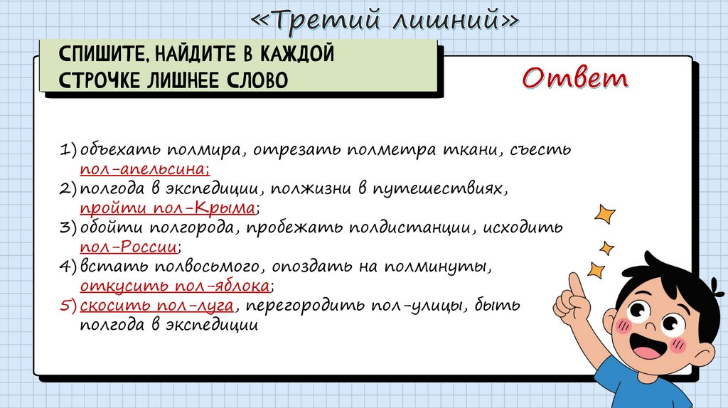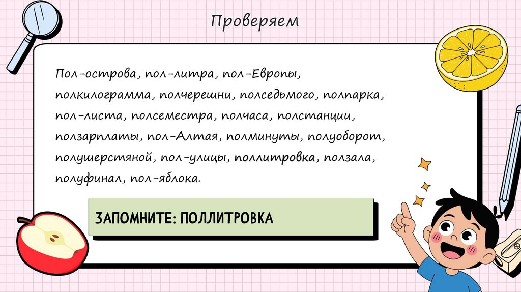 полушерстяной, пол-улицы, поллитровка, ползала,