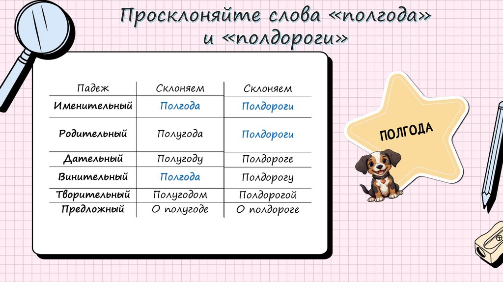 (пол)семестра, (пол)часа, (пол)станции, (пол)зарплаты,