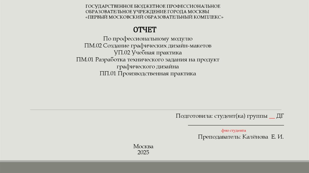 ПМ.01 Разработка технического задания на продукт графического дизайнаПП.01 Производственная практика