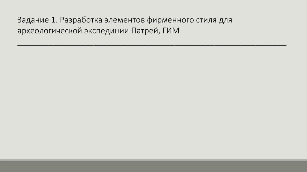 Задание 1. Разработка элементов фирменного стиля дляархеологической экспедиции Патрей, ГИМ