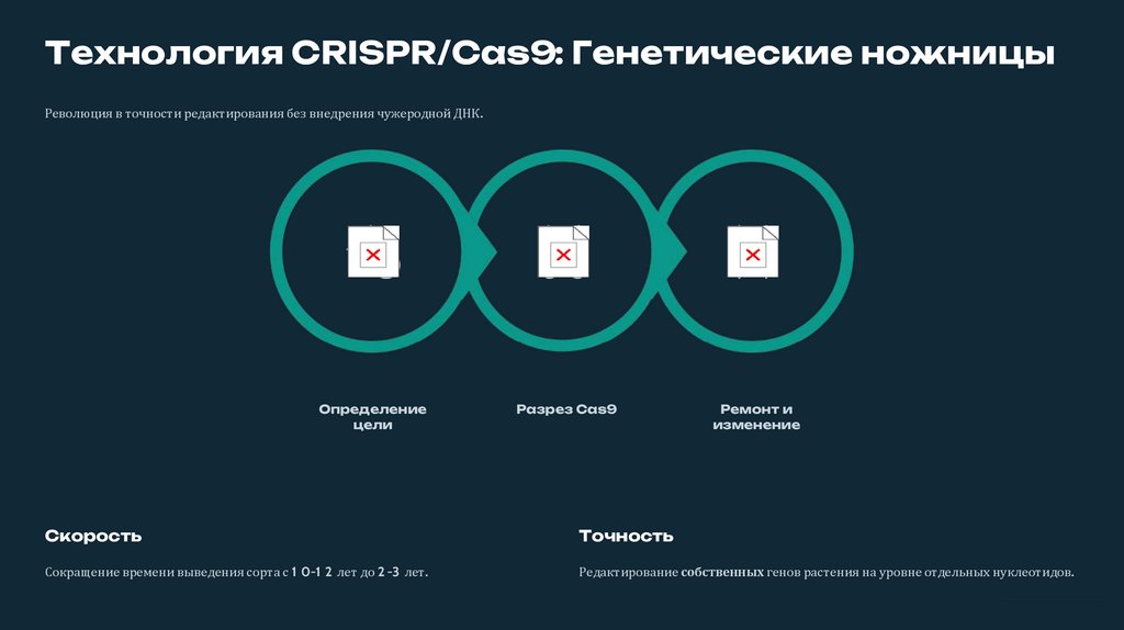 Технология CRISPR/Cas9: Генетические ножницыРеволюция в точности редактирования без внедрения чужеродной ДНК.