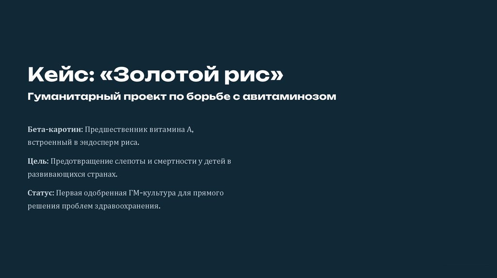 Кейс: «Золотой рис»Гуманитарный проект по борьбе с авитаминозом