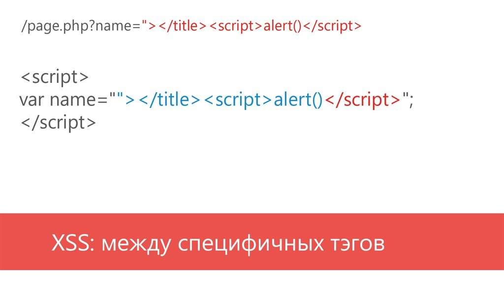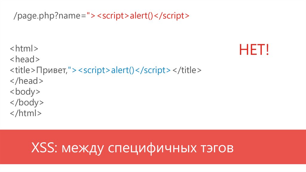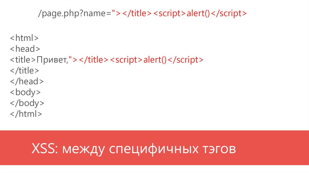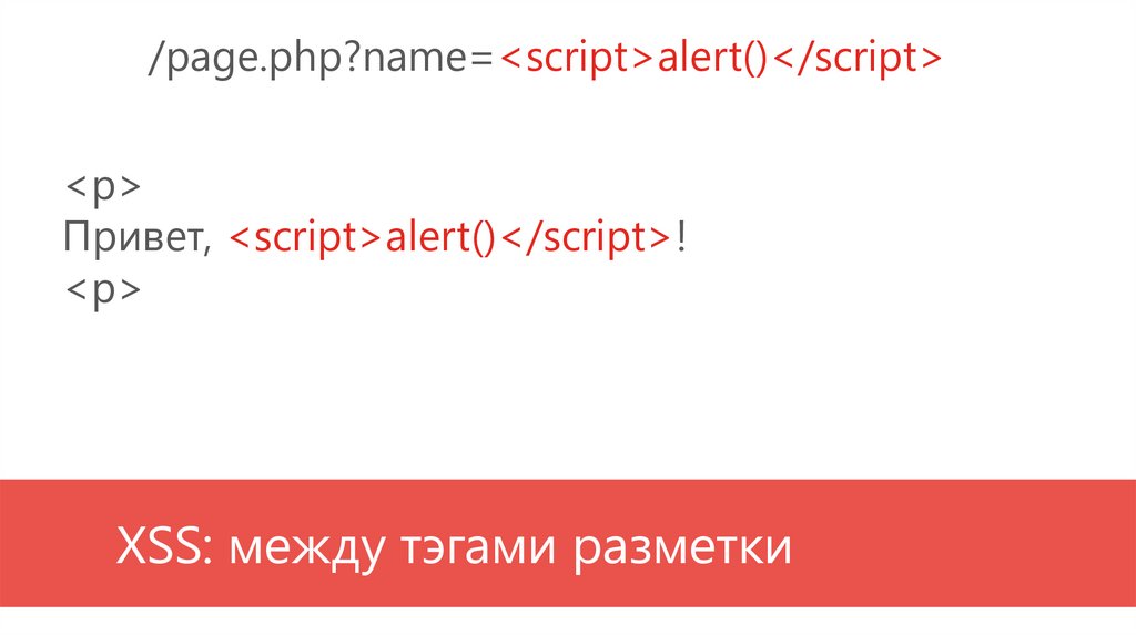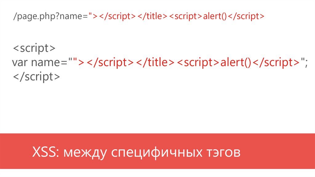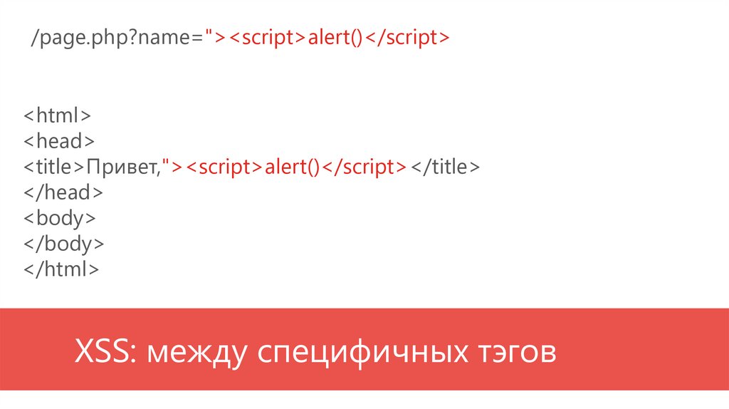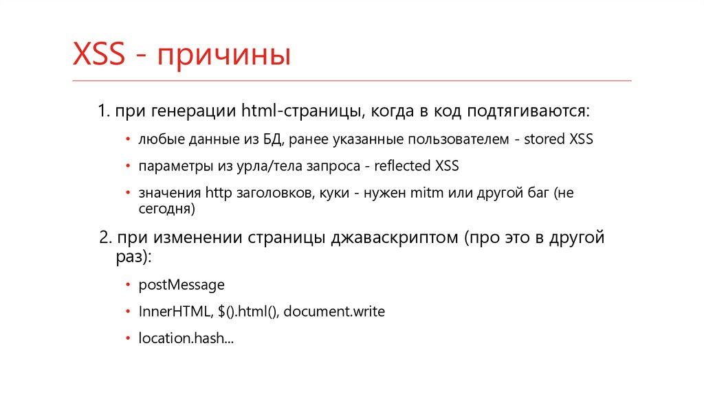XSS - причины1. при генерации html-страницы, когда в код подтягиваются: