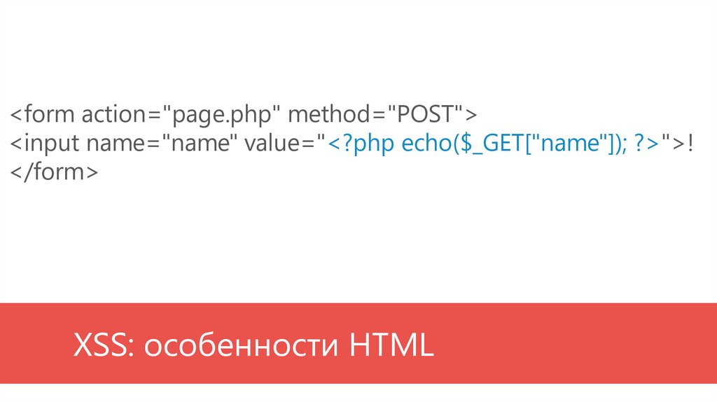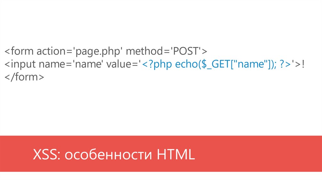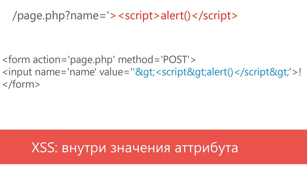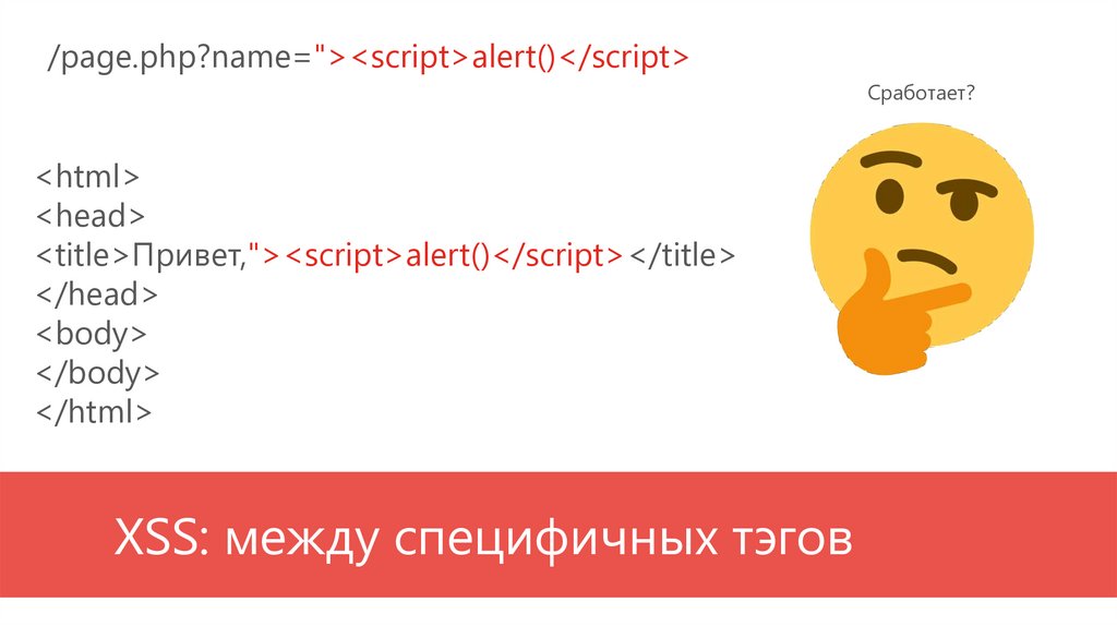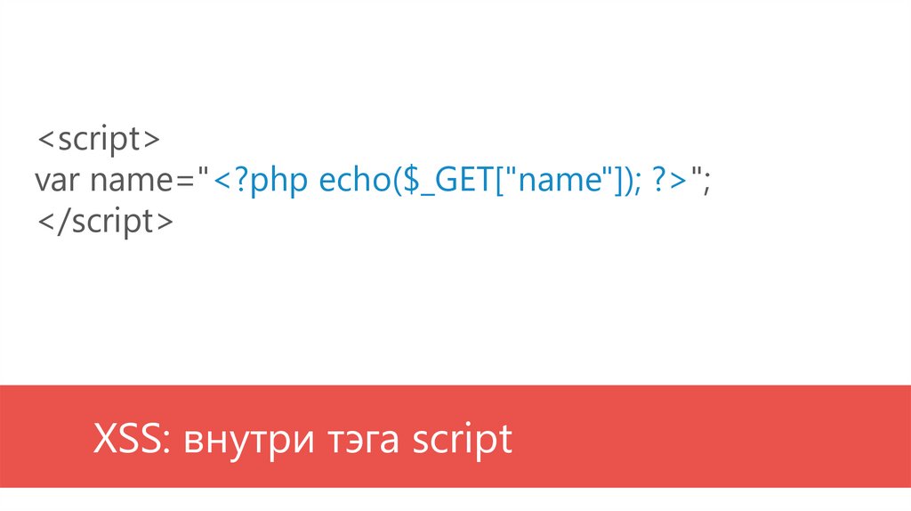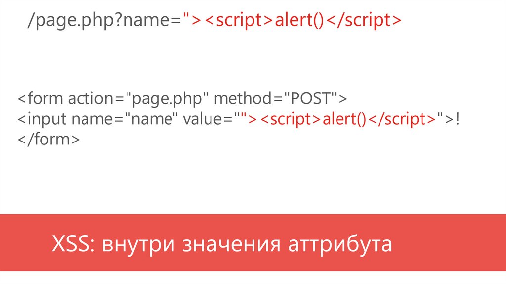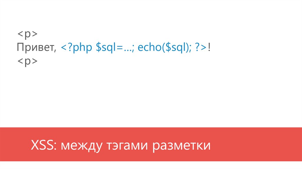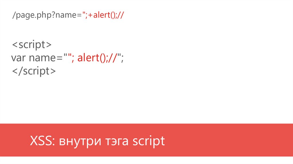 XSS - причины1. при генерации html-страницы, когда в код подтягиваются:
