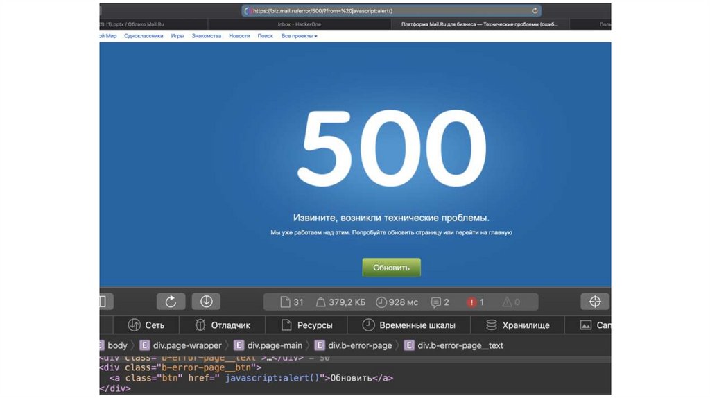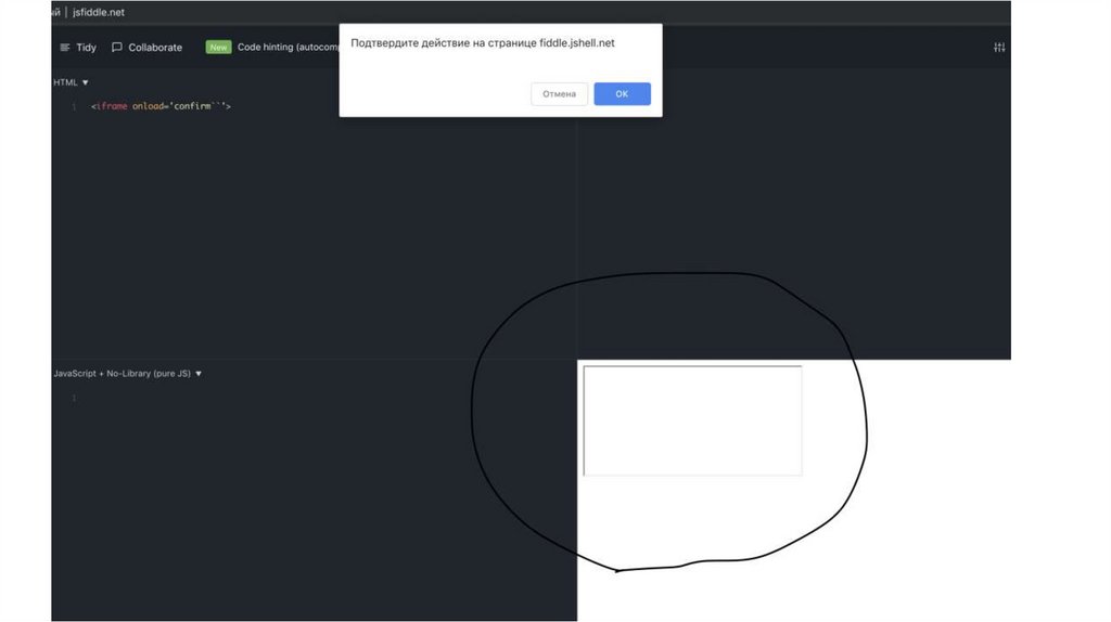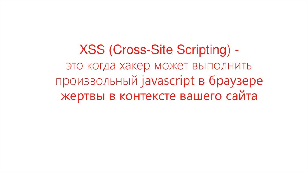 XSS (Cross-Site Scripting) это когда хакер может выполнитьпроизвольный javascript в браузере