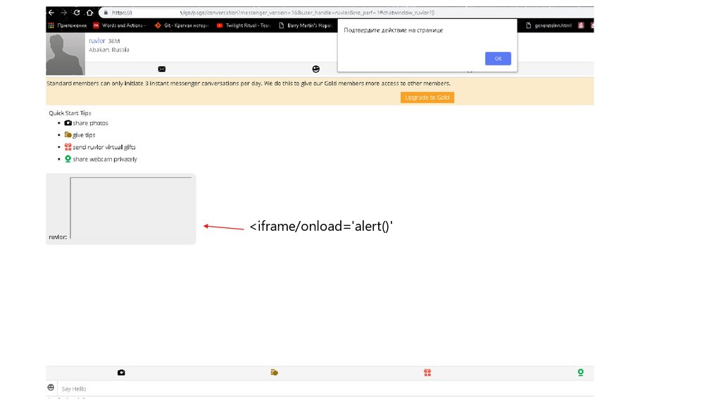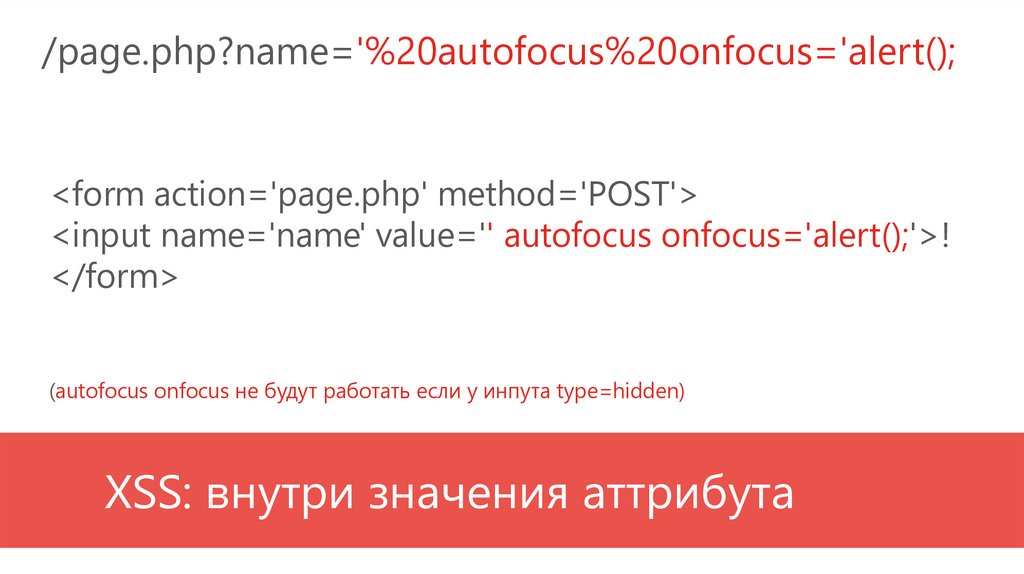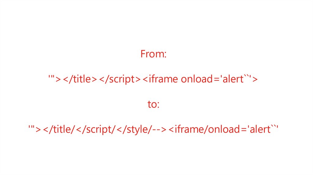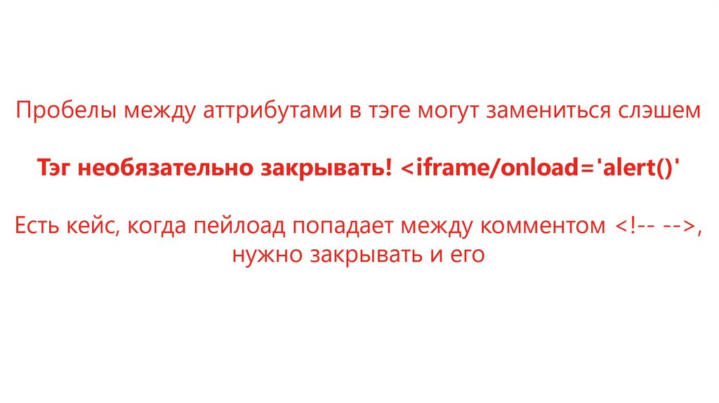 Пробелы между аттрибутами в тэге могут замениться слэшемТэг необязательно закрывать! <iframe/onload='alert()'
