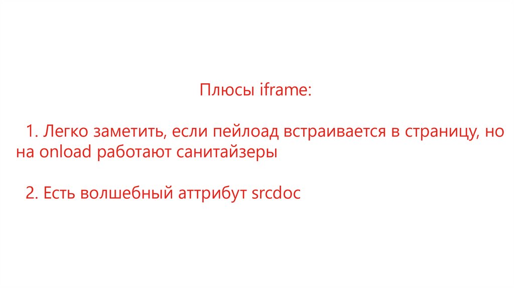 Плюсы iframe:1. Легко заметить, если пейлоад встраивается в страницу, но