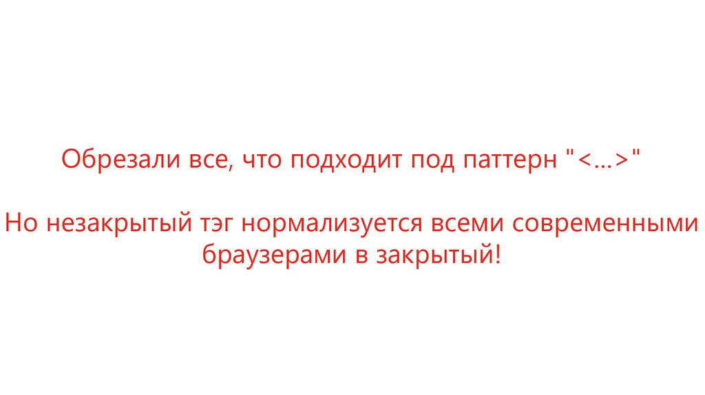 Обрезали все, что подходит под паттерн "<…>"Но незакрытый тэг нормализуется всеми современными