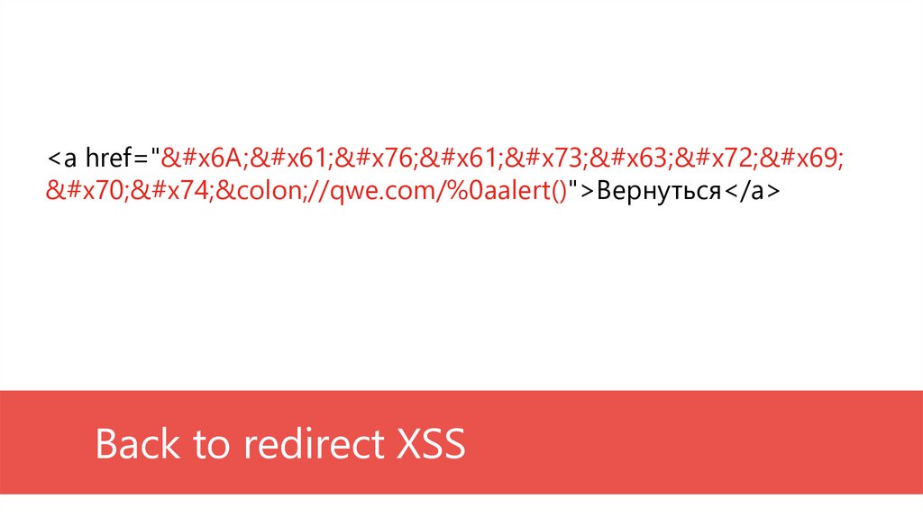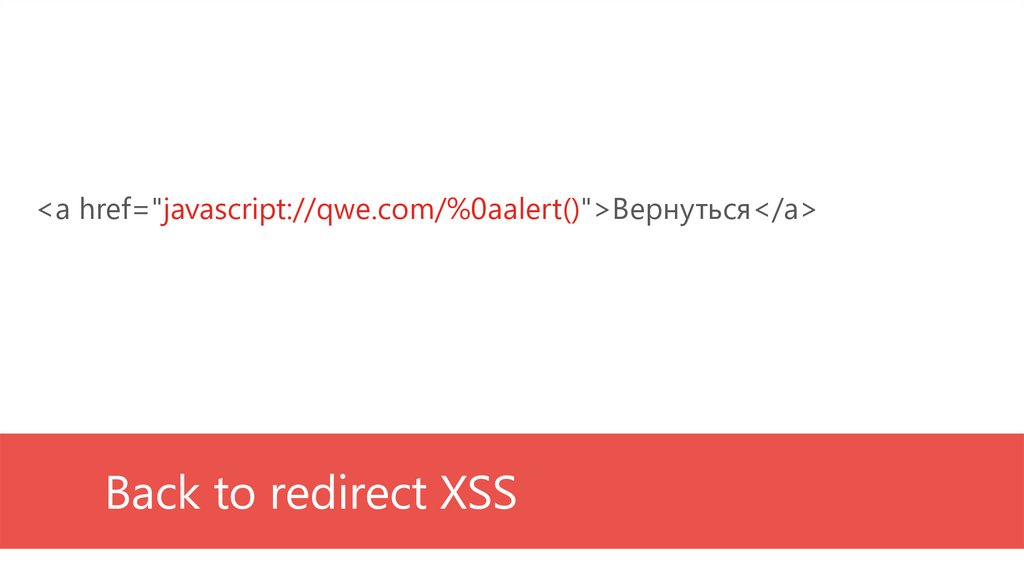 <a href="javascript://qwe.com/%0aalert()">Вернуться</a>Back to redirect XSS