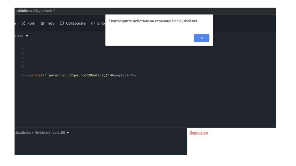 <a href="javascript://qwe.com/%0aalert()">Вернуться</a>