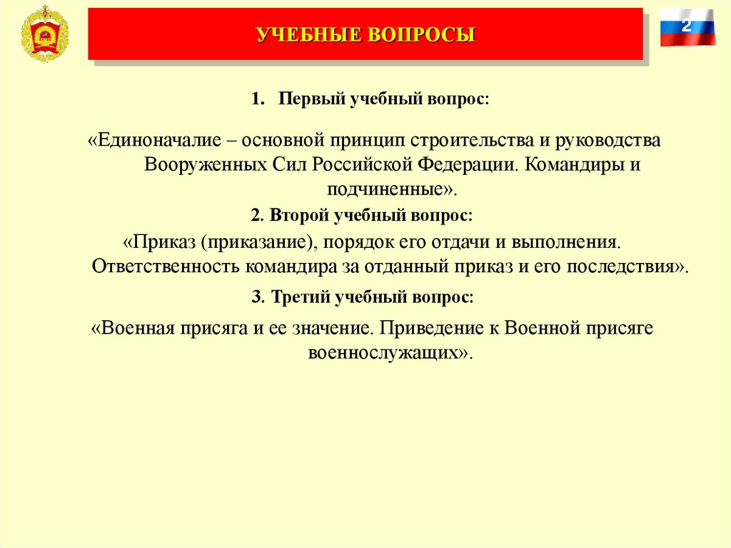 ПЕРВЫЙ УЧЕБНЫЙ ВОПРОС«Единоначалие – основной принцип