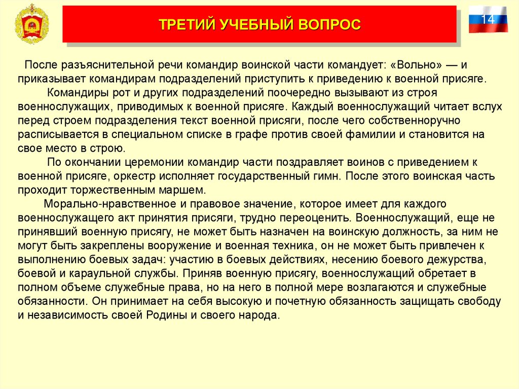 ТРЕТИЙ УЧЕБНЫЙ ВОПРОС«Военная присяга и ее значение. Приведение к