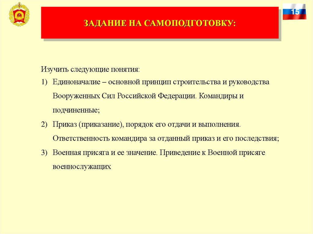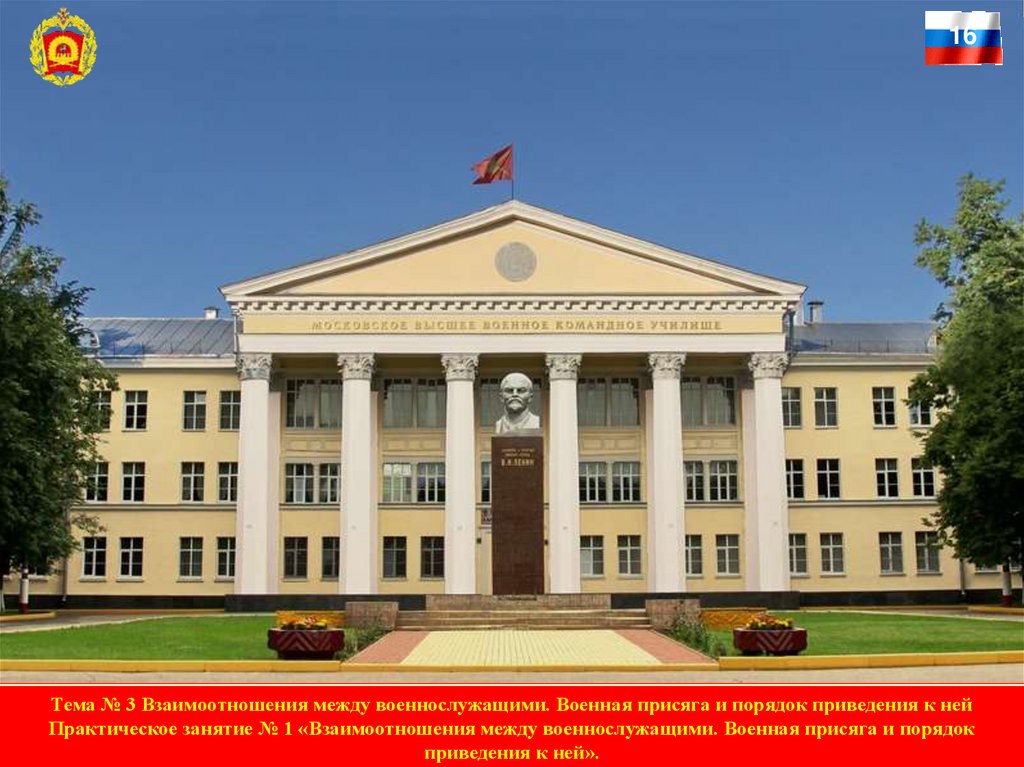 16Тема № 3 Взаимоотношения между военнослужащими. Военная присяга и порядок приведения к ней