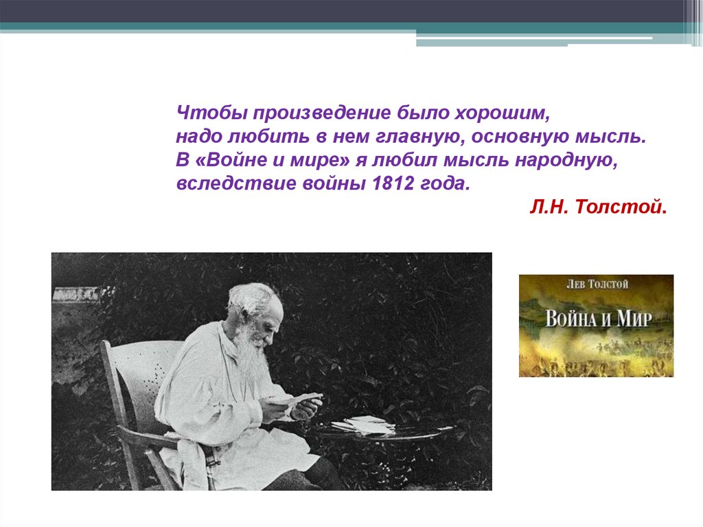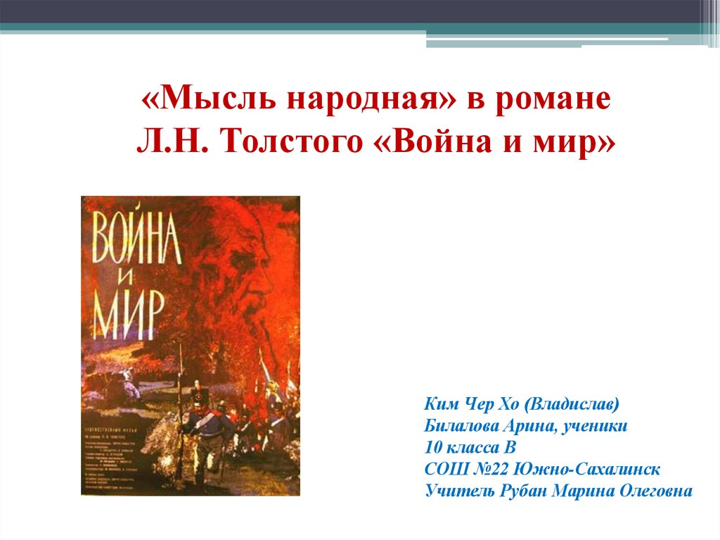 Л.Н. Толстой, исходя из его высказывания, считал «мысльнародную» главной мыслью романа «Война и мир». Это роман