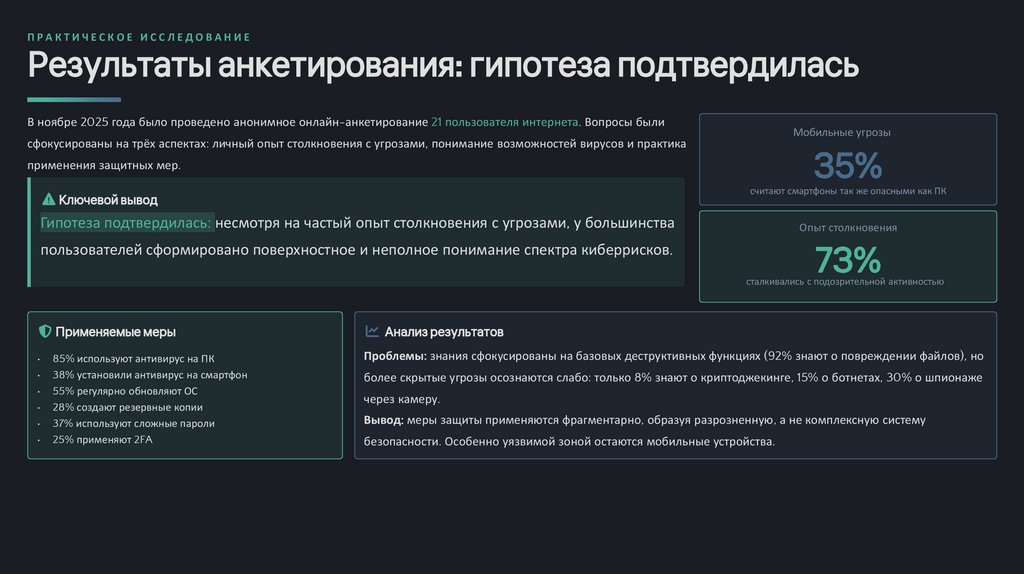 Гипотеза подтвердилась: несмотря на частый опыт столкновения с угрозами, у большинства