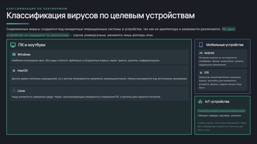 КЛАССИФИКАЦИЯ ПО ПЛАТФОРМАМКлассификация вирусов по целевым устройствам