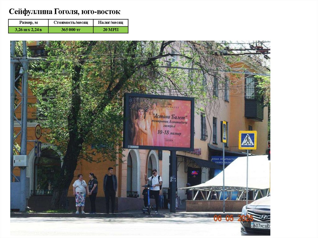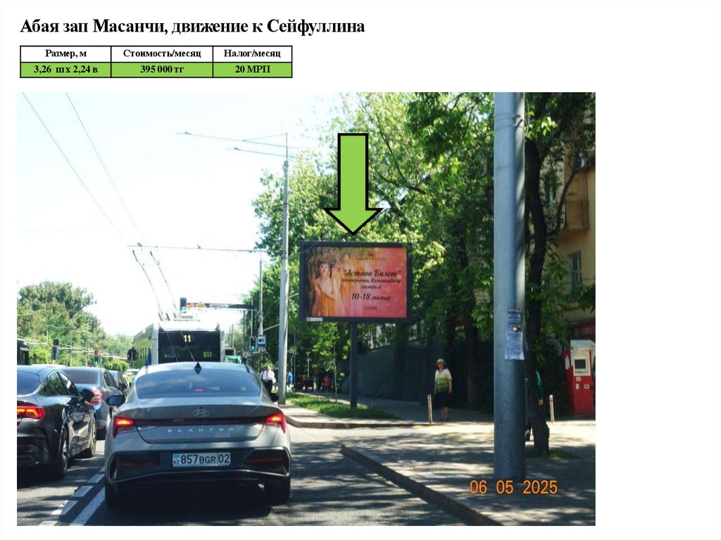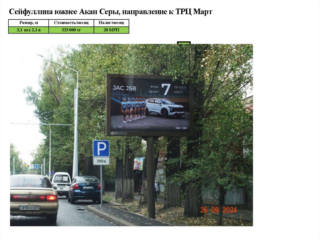 Сейфуллина южнее Акан Серы, направление к ТРЦ МартРазмер, м