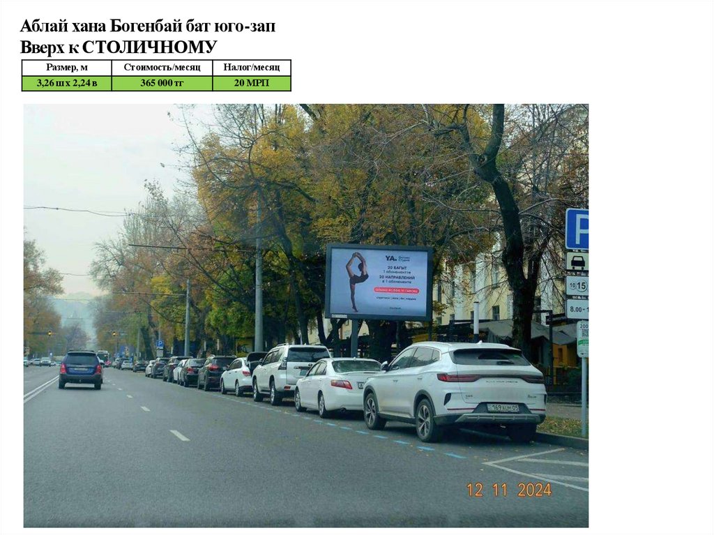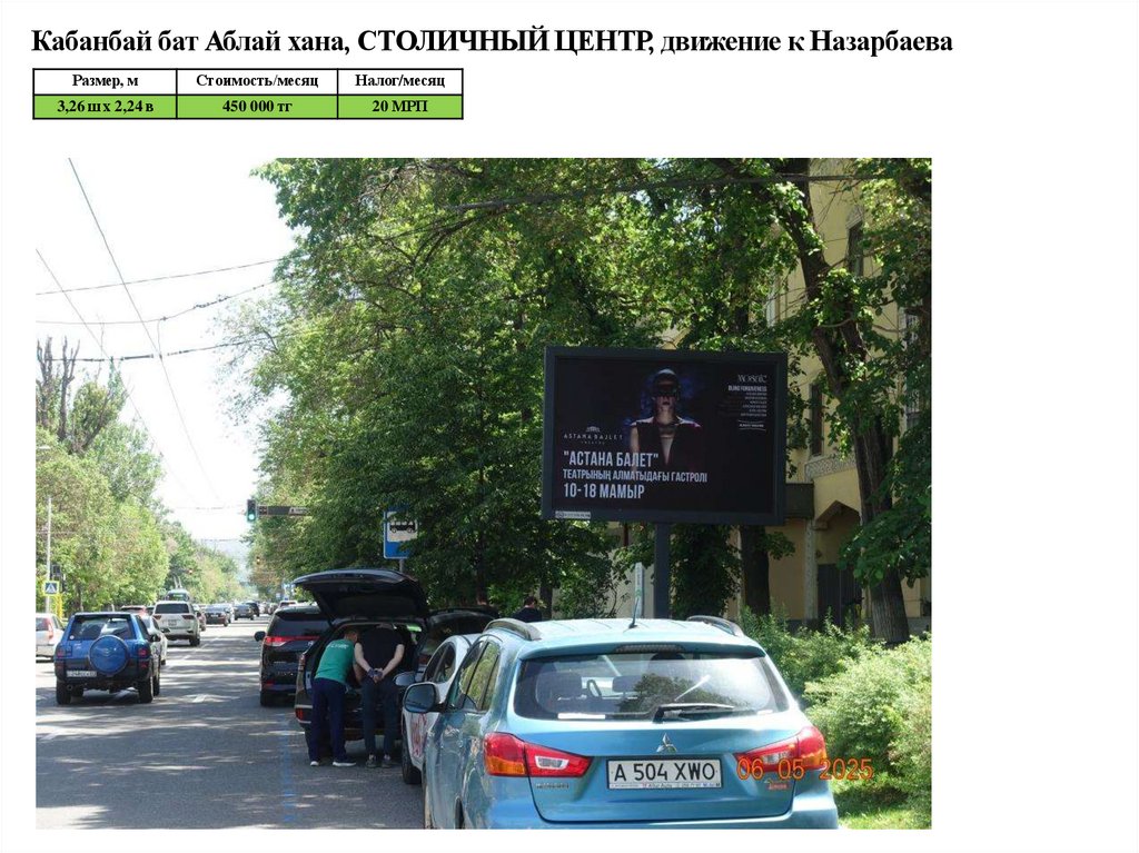 Кабанбай бат Аблай хана, СТОЛИЧНЫЙ ЦЕНТР, движение к НазарбаеваРазмер, м