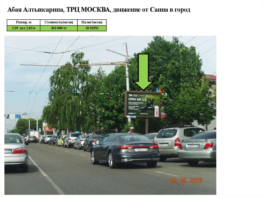 Абая Алтынсарина, ТРЦ МОСКВА, движение от Саина в городРазмер, м