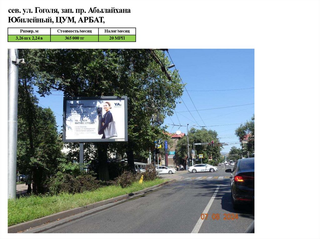 сев. ул. Гоголя, зап. пр. АбылайханаЮбилейный, ЦУМ, АРБАТ,