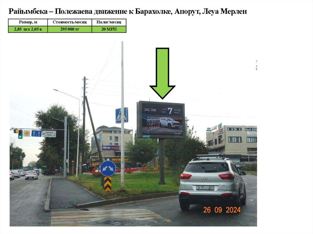 Райымбека – Полежаева движение к Барахолке, Апорут, Леуа МерленРазмер, м