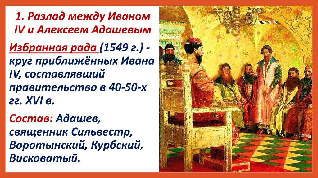 1. Разлад между ИваномIV и Алексеем Адашевым