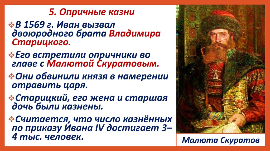 5. Опричные казниВ 1569 г. Иван вызвал