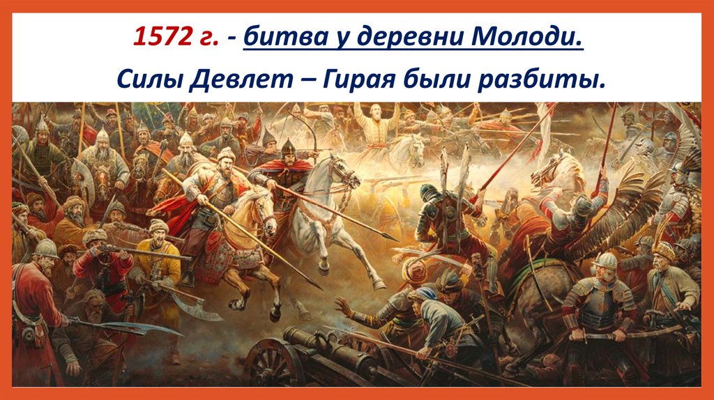 1572 г. - битва у деревни Молоди.Силы Девлет – Гирая были разбиты.