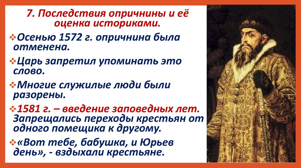 7. Последствия опричнины и еёоценка историками.