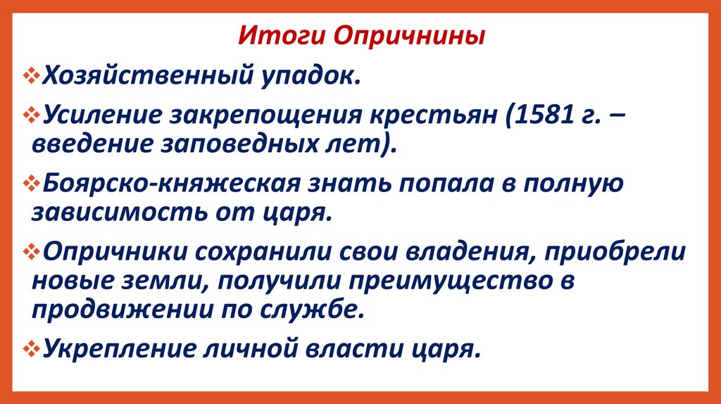 Итоги ОпричниныХозяйственный упадок.