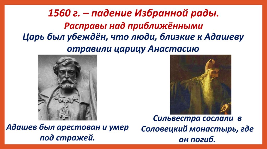 1560 г. – падение Избранной рады.Расправы над приближёнными