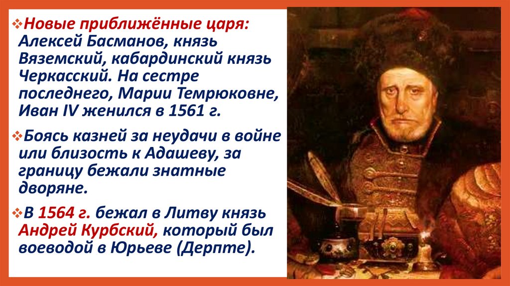 Новые приближённые царя:Алексей Басманов, князь