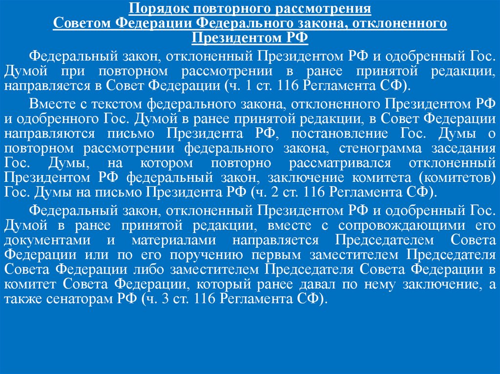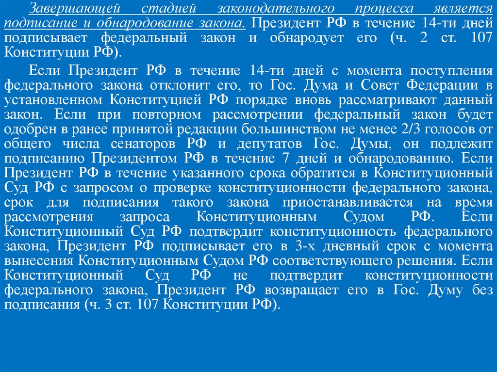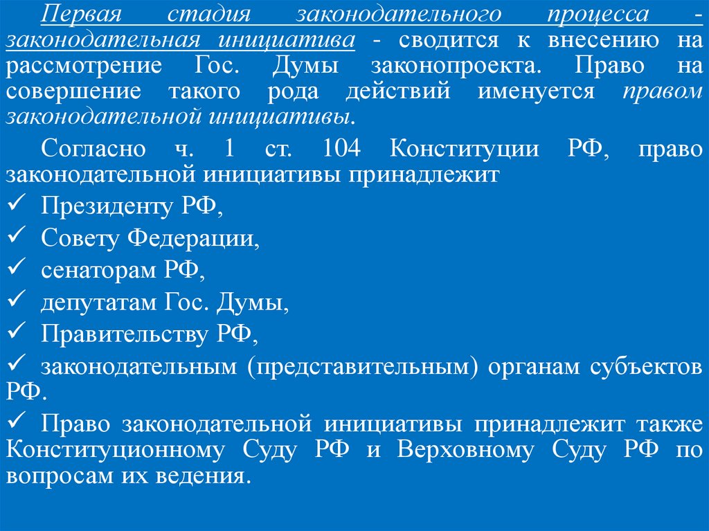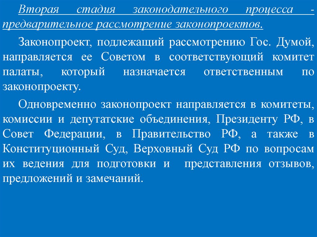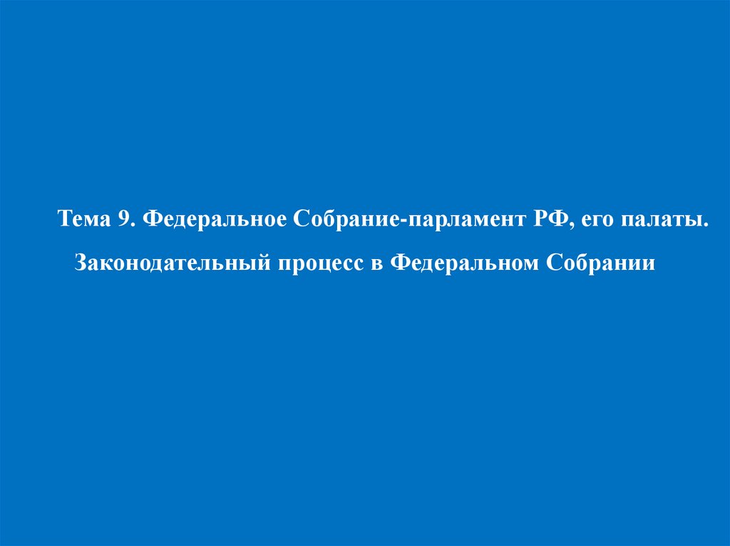 Тема 9. Федеральное Собрание-парламент РФ, его палаты. Законодательный процесс в Федеральном Собрании