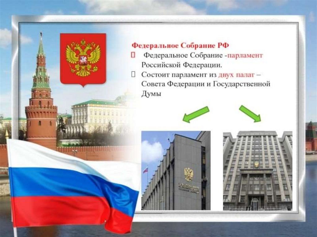 Федеральное Собрание состоит из двух палат Совета Федерации и Государственной Думы.