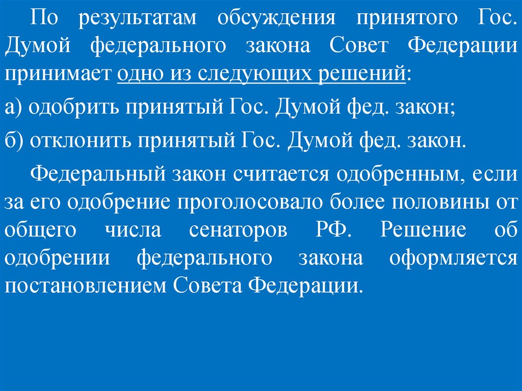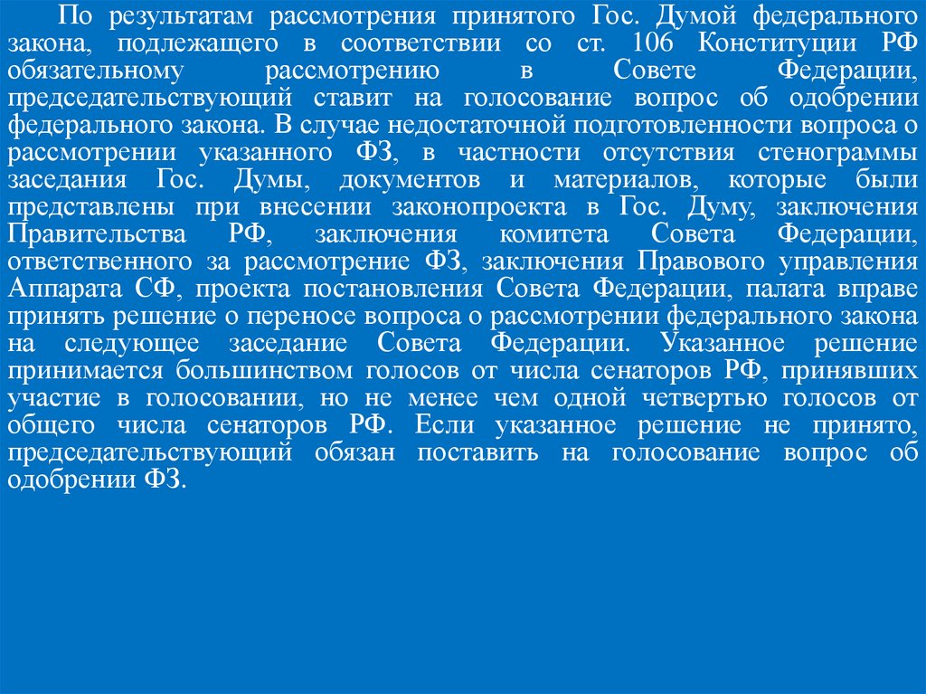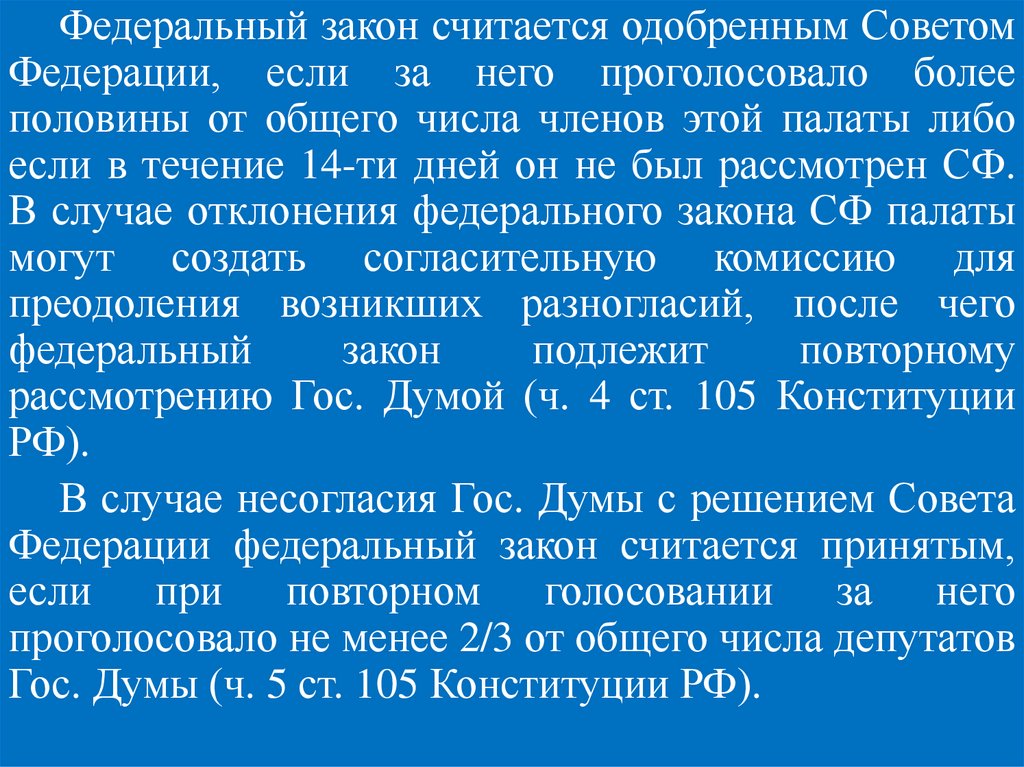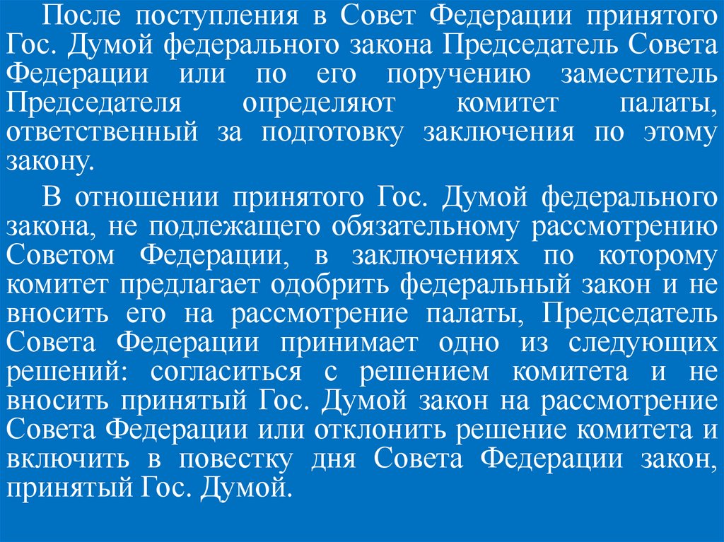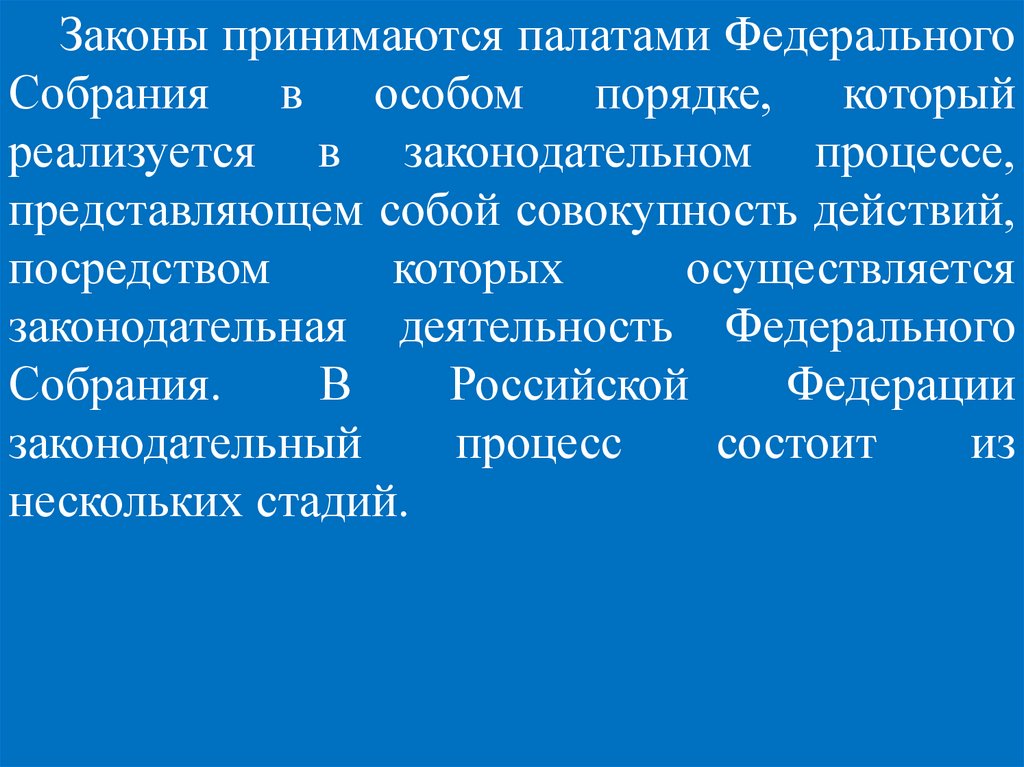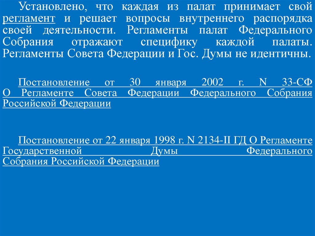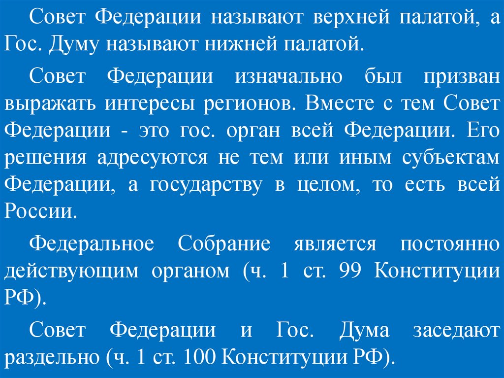 процессе. Палаты Федерального Собрания рассматриваются как части единого парламента, и в этом